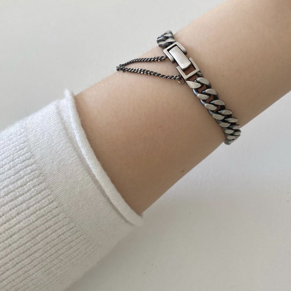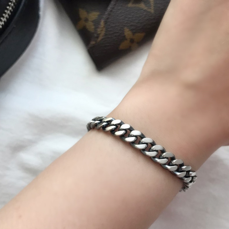 실버 7돈 유화 이니셜 각인 체인 커플 우정 팔찌