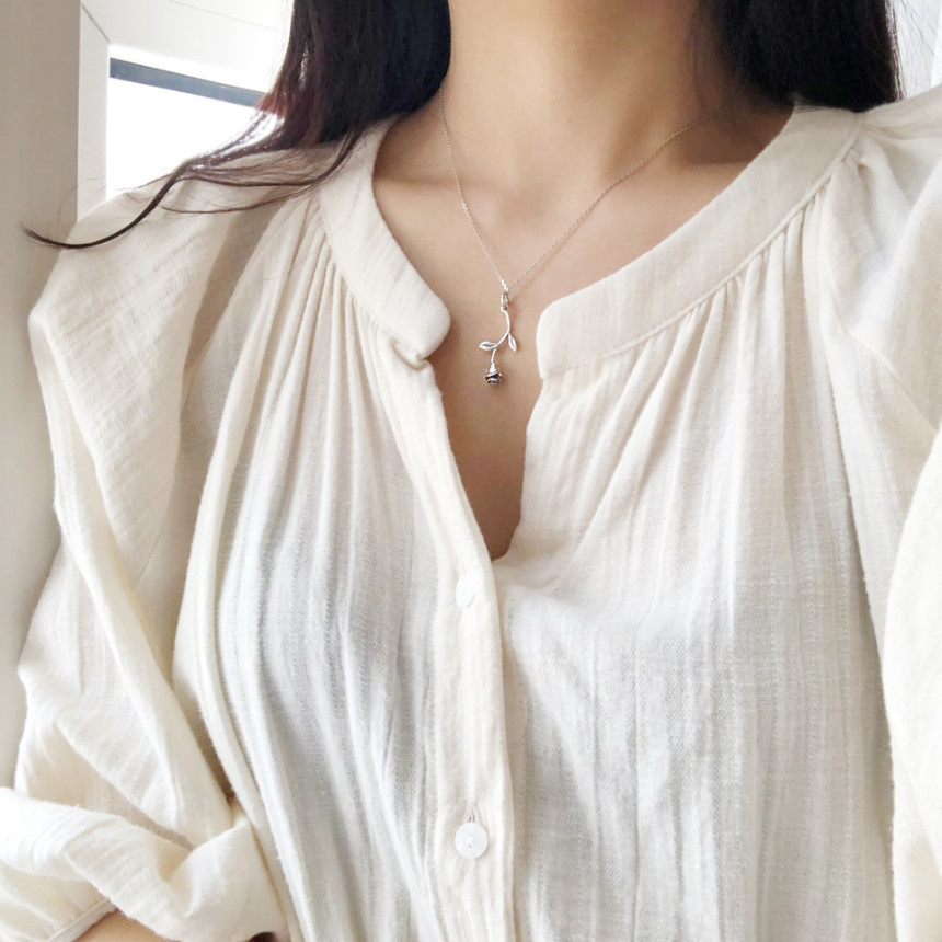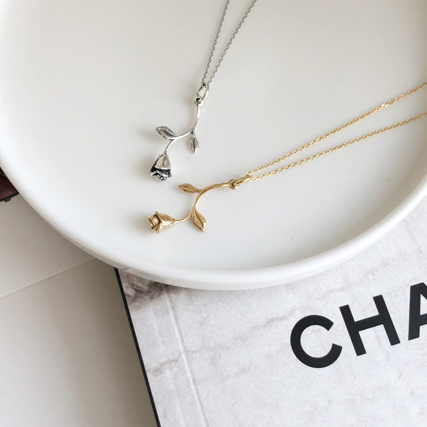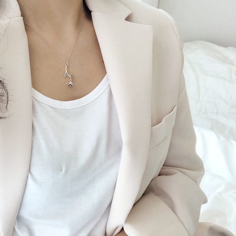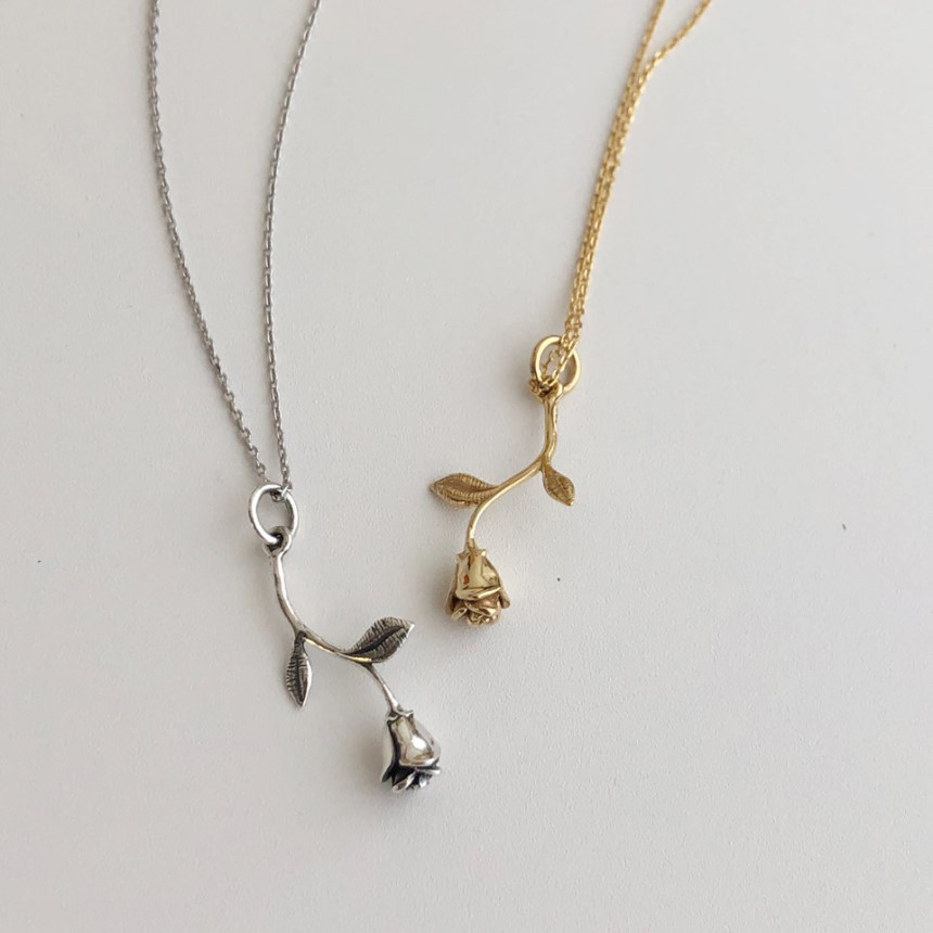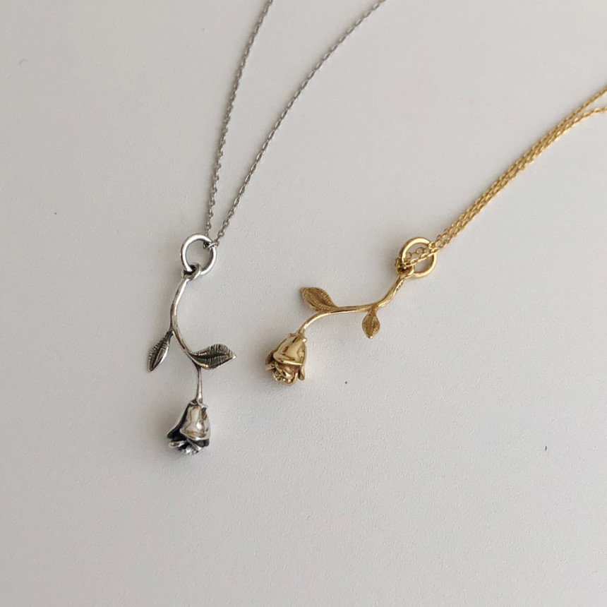 기존의 골드 장미 한 송이 목걸이의 인기에 실버 제품도 제작하게 되었어요