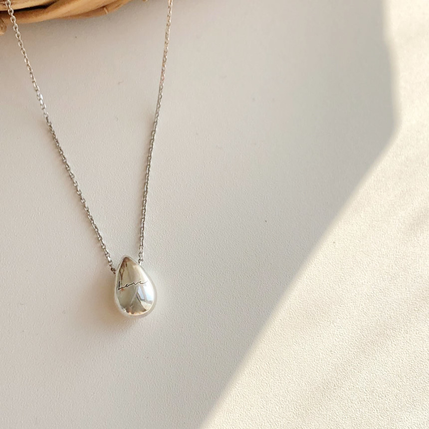 실버 이니셜 각인 물방울 목걸이